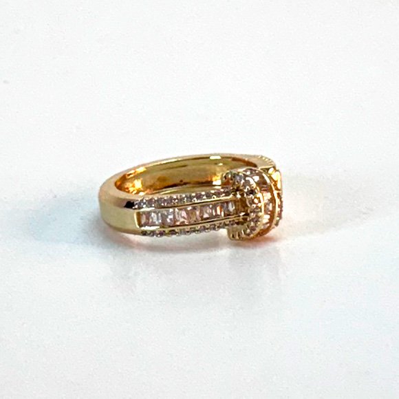 Elegante anillo dorado con un diseño de lazo adornado con brillantes circonitas. Perfecto para añadir un toque de sofisticación a cualquier estilo.