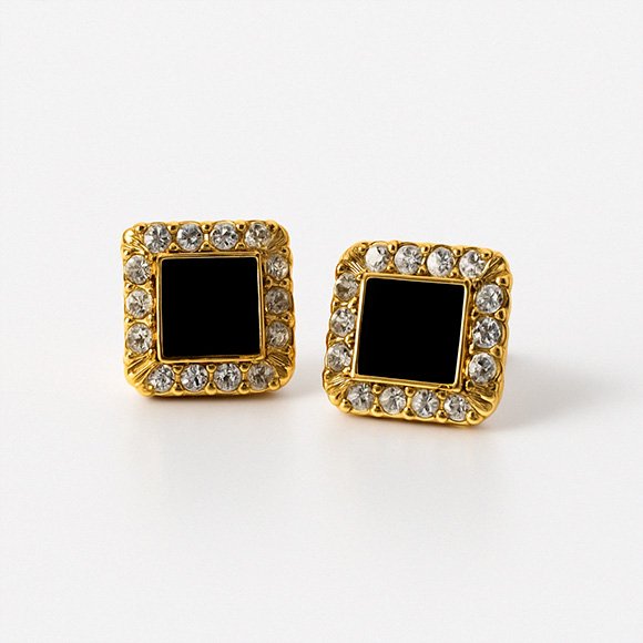 Diseño cuadrado con piedra negra central y contorno de zirconias transparentes. El laminado aporta un acabado pulido que intensifica el contraste visual. Ideal para quienes buscan un accesorio con carácter y elegancia estructurada.