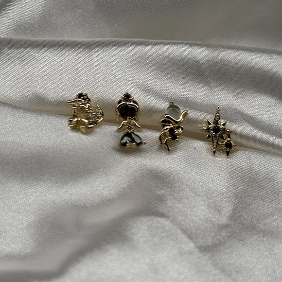 Set de cuatro piercing laminados inspirado en la historia de Tiana. Cada pieza combina brillo y diseño con un toque de audacia, representando la perseverancia y la elegancia. Ideal para quienes creen en el poder del trabajo y los sueños cumplidos.
